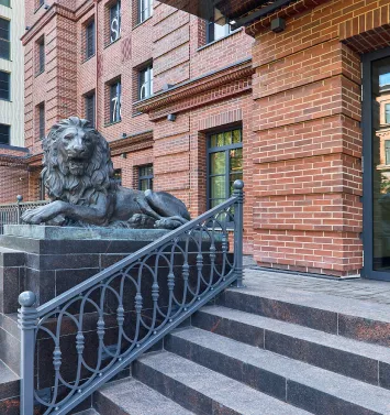 Скульптуры сидящих львов при входе
